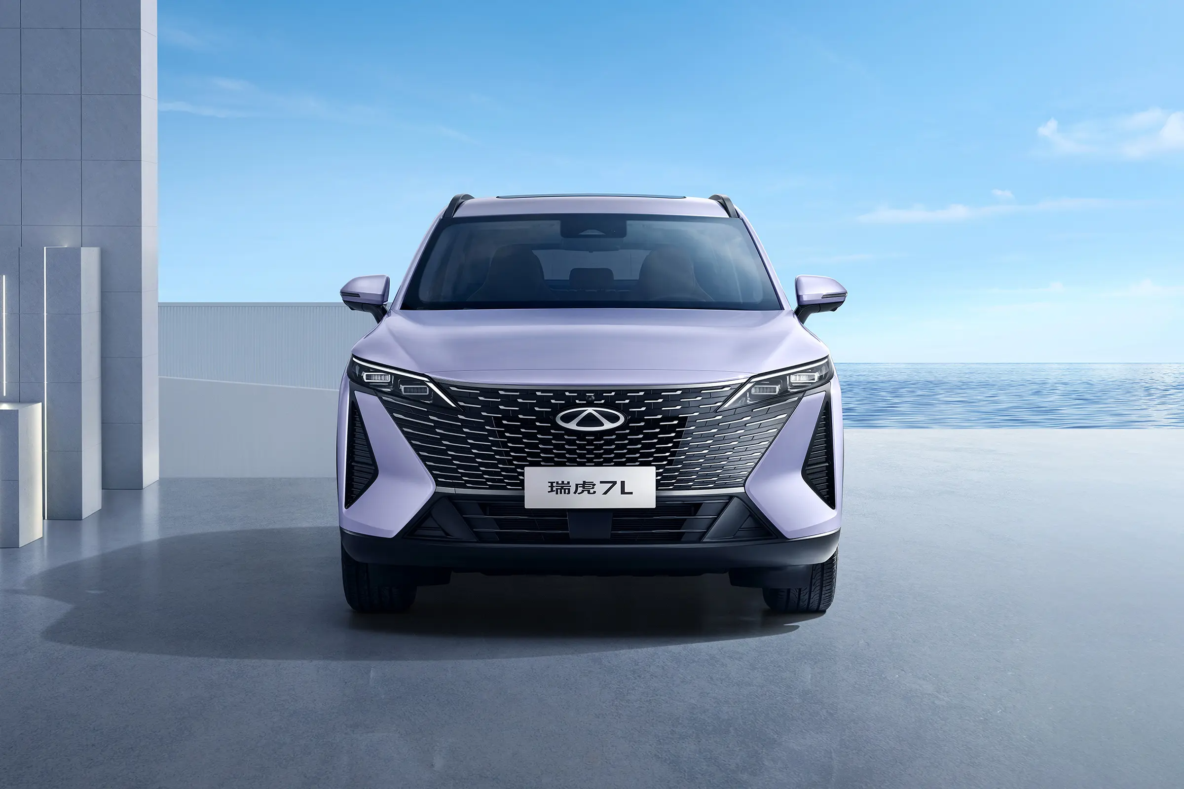 Официальные изображения Tiggo 7L демонстрируют яркую стилистику модели. Судя по ним, Tiggo 7L для китайского рынка получил ряд заметных дизайнерских решений. Спереди новый автомобиль имеет большую V‑образную решётку радиатора, в центре которой расположен логотип Chery, а по бокам интегрированы узкие фары. Также видны три меньшие решётки: две по бокам и одна снизу.