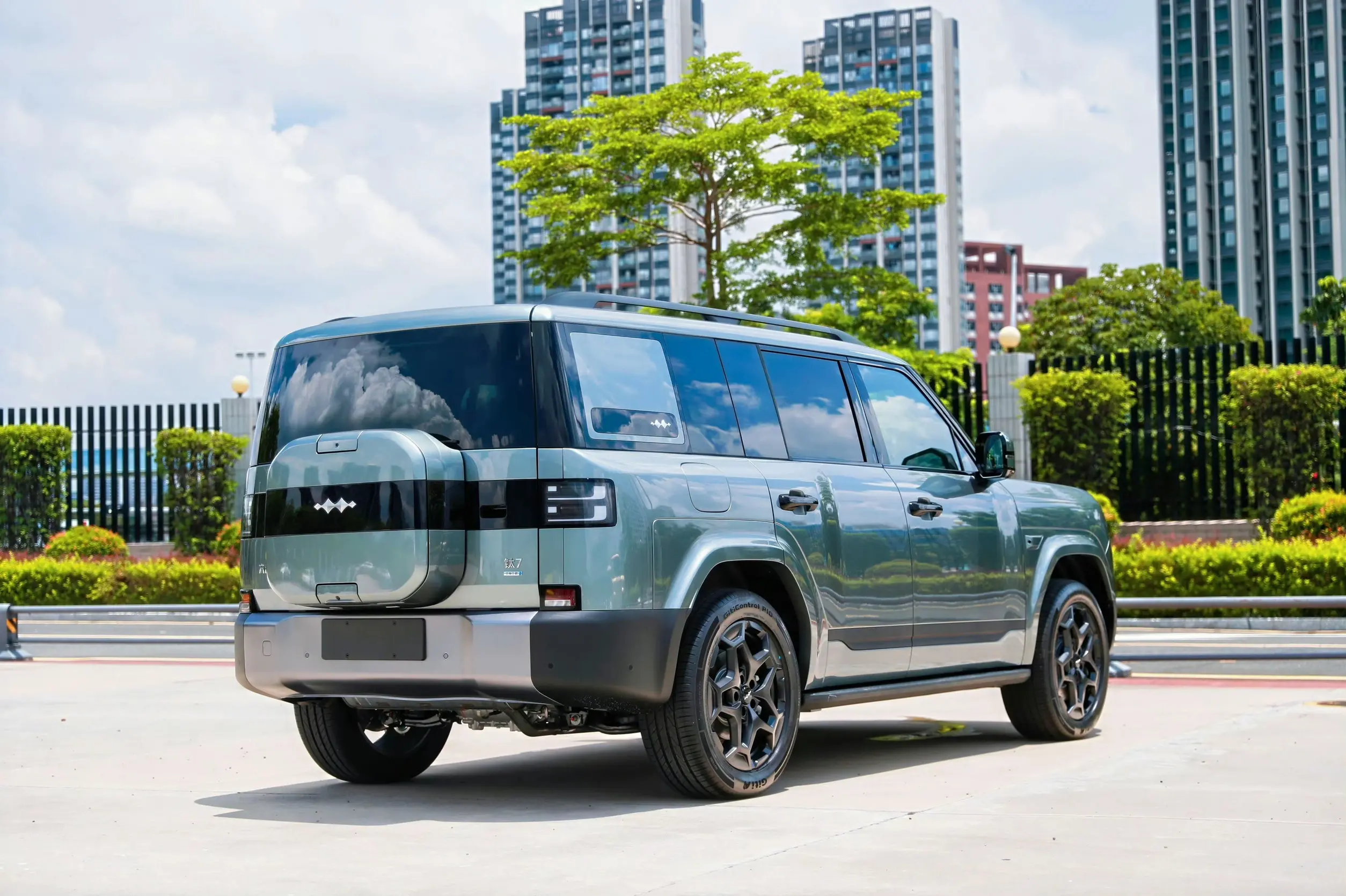 Снаружи Titanium 7 унаследовал прочную ДНК семейства Leopard с его мгновенно узнаваемой угловатой формой. Габариты новинки 4999/1995/1865 мм и колёсная база 2920 мм - это полностью соответствуют стандартам крупногабаритного внедорожника.