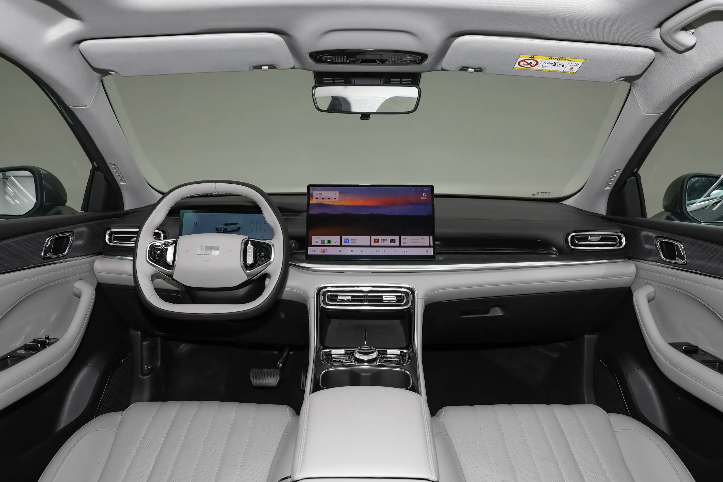 Салон выполнен в стиле нового поколения Geely Galaxy и доступен в трёх цветовых решениях: