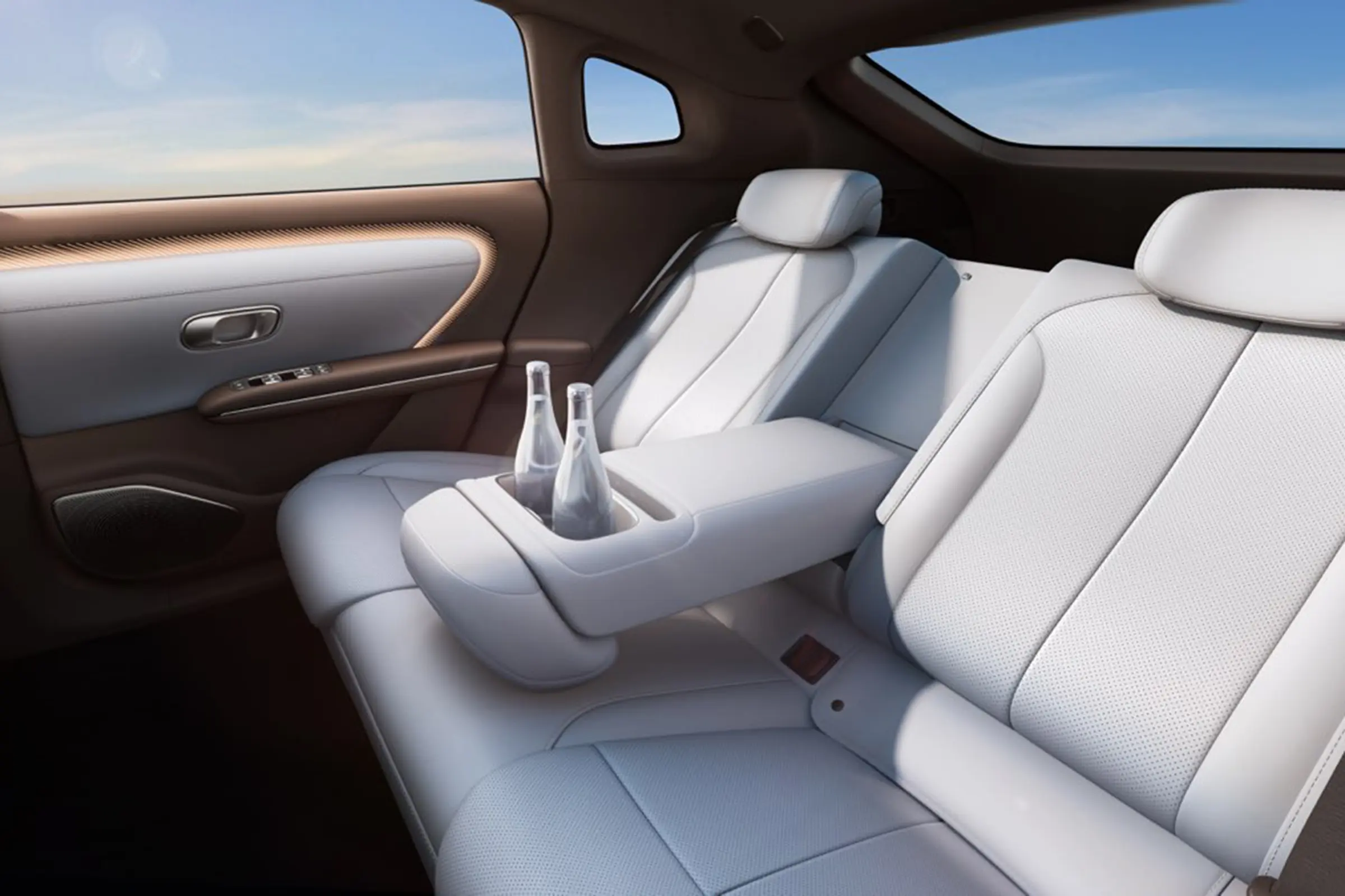Двухсекционный холодильник объёмом 9,5 л с температурным диапазоном от -5°C до 50°C входит в стандартную комплектацию топовой комплектации. Объём верхнего отделения составляет 4,9 л, а нижнего — 4,6 л. Задние сиденья оснащены электроприводом регулировки спинки на 145°, функциями подогрева, вентиляции и массажа.