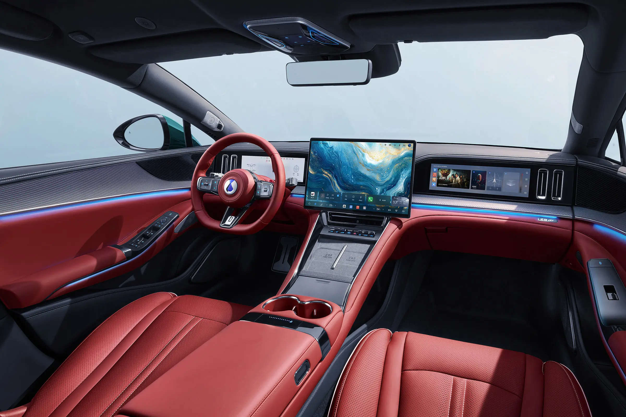 Внутри Z9 GT сохранилась трехэкранная архитектура, включающая 17,3-дюймовый центральный дисплей и два 13,2-дюймовых экрана для приборной панели и пассажира. Значительные изменения в интерьере включают в себя перенос рычага переключения пережач на рулевую колонку и новый руль.
