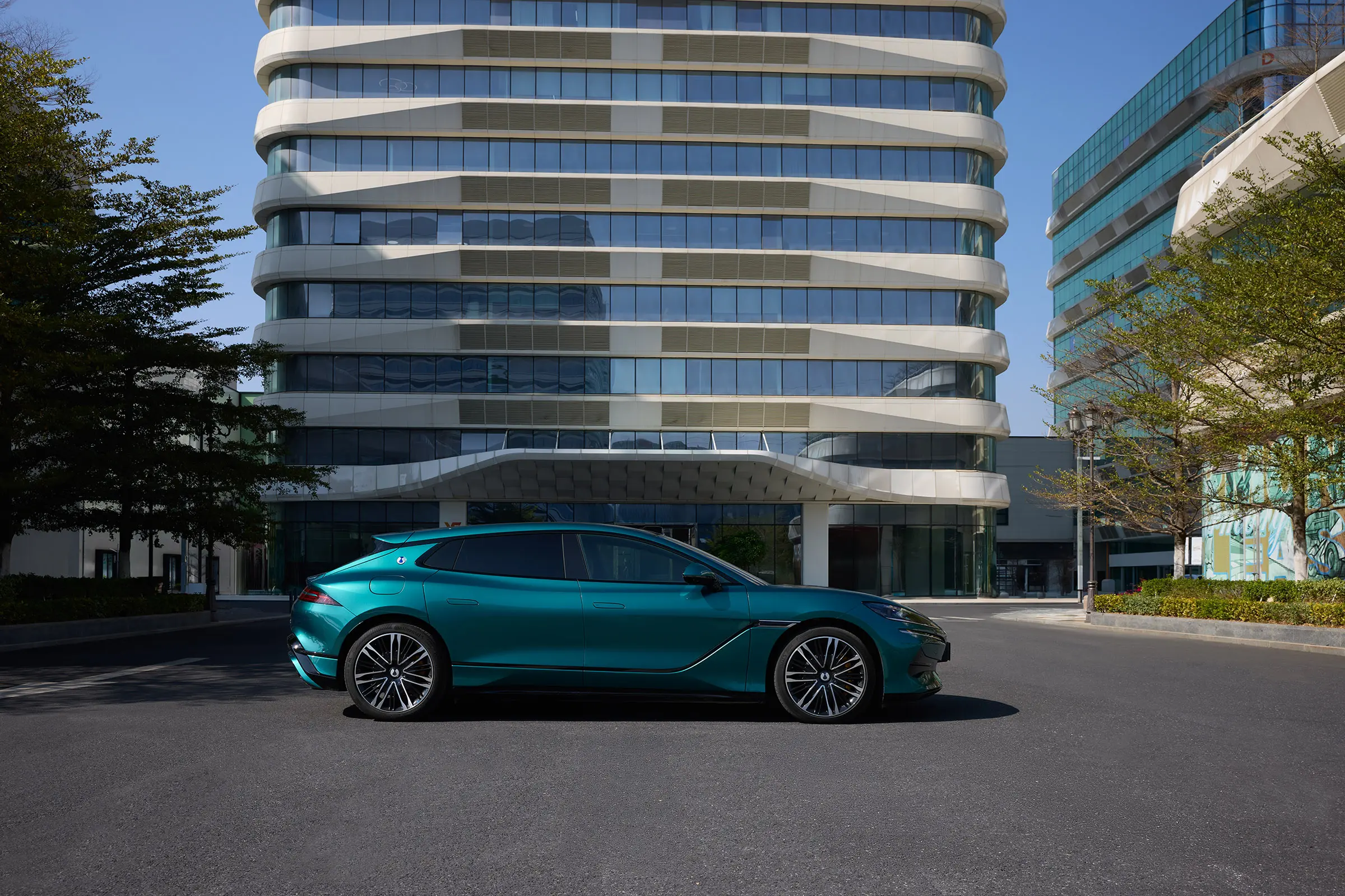 Новая Denza Z9 GT получила LiDAR на крыше, поддерживающий усовершенствованную систему помощи водителю DiPilot 300 «God’s Eye» 5.0. На кузове появился новый синий индикатор, сигнализирующий о режиме автопилота. Длина автомобиля составляет 5195 мм, ширина — 1990 мм, высота — 1500 мм, колесная база — 3125 мм. В опции добавлены новые 21-дюймовые диски и новый цвет кузова «Fjord Green».
