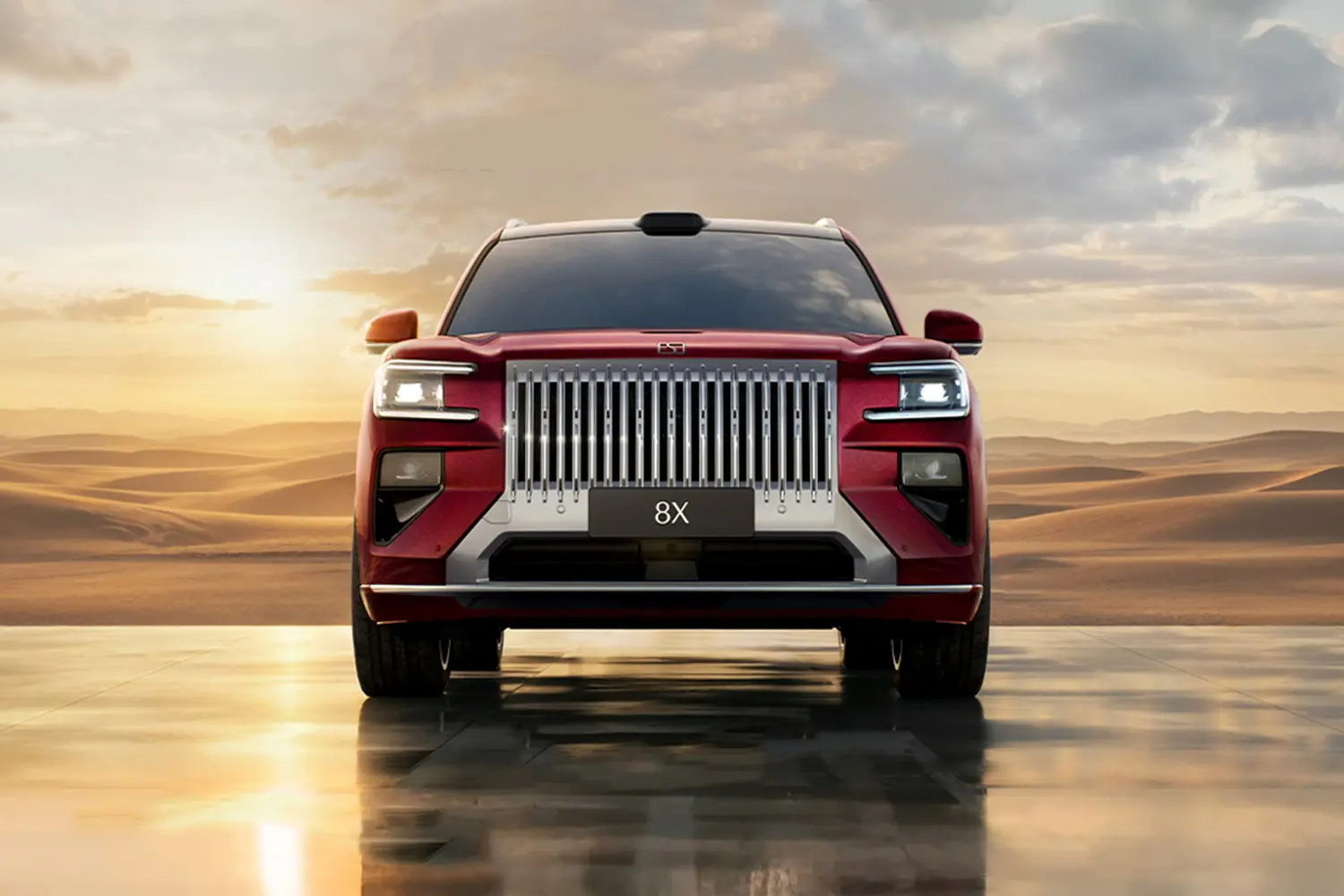 Экстерьер Zeekr 8X сочетает премиальные детали с футуристичными элементами. Спереди — хромированная решётка радиатора в стиле «водопад» и С‑образные фары, состоящие из 25 368 ромбовидных граней. На крыше размещён лидар, подчёркивающий амбиции в области автономного вождения. Задний фонарь во всю ширину кузова продолжает геометрическую тему: он включает 54 894 ромбовидные грани и использует технологию ультракрасного света с длиной волны 63 нм.