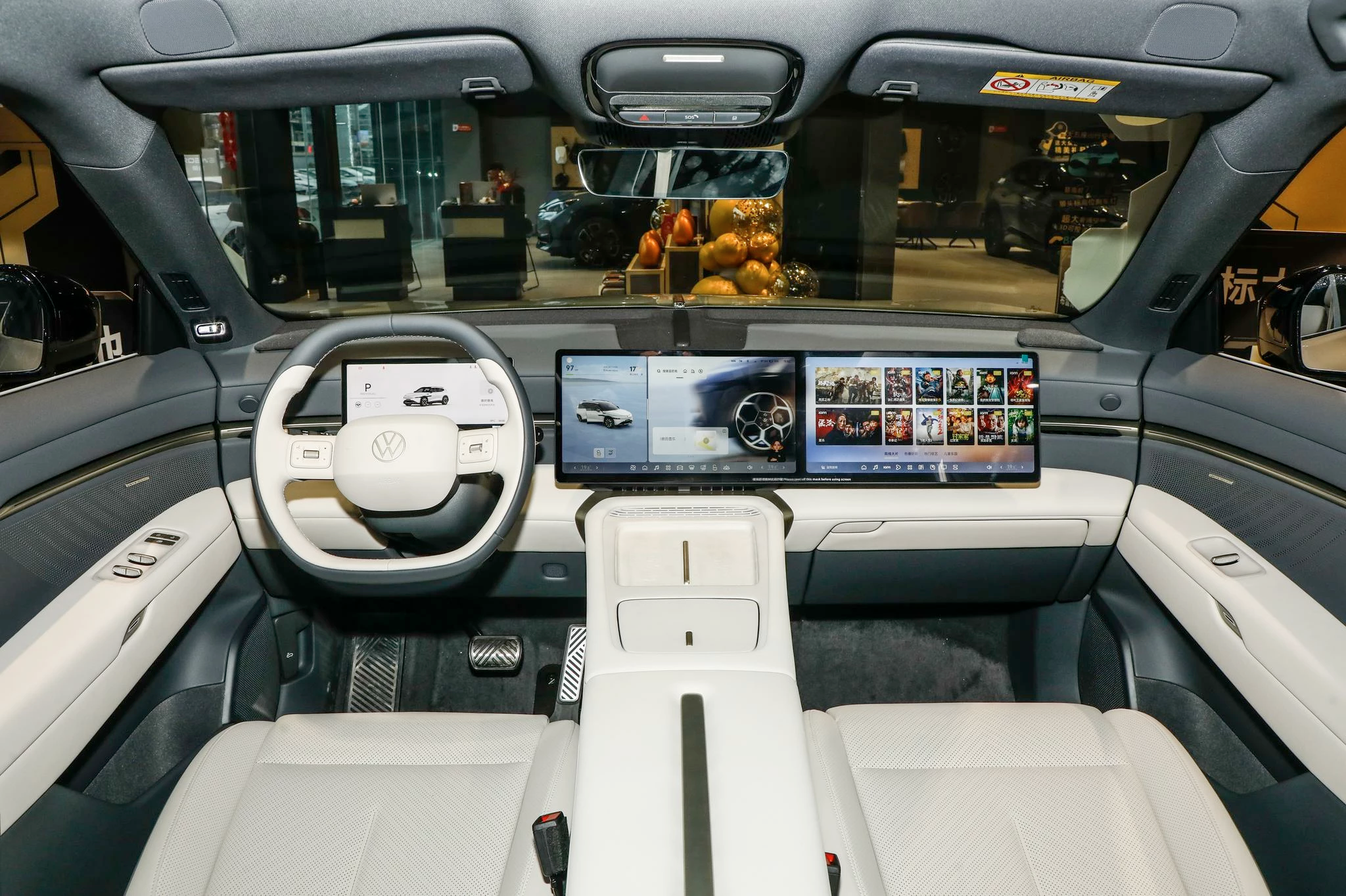 ID.Unyx 08 получил салон с акцентом на водителя: 10,25‑дюймовый ЖК‑дисплей приборной панели и два объединённых экрана диагональю 14,96 дюйма с разрешением 2,4 K — для навигации, отображения состояния автомобиля и взаимодействия с системой ADAS. Руль с двумя спицами возвращает физические кнопки и колёсики прокрутки — практичный ход для управления без отвлечения от дороги.