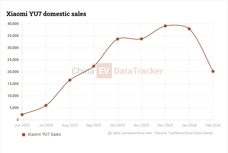Продажи Xiaomi YU7. Данные: China EV DataTracker.