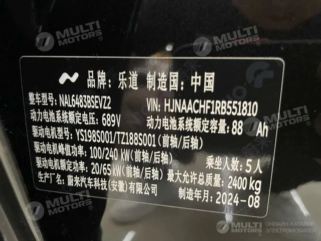 ОБЩИЕ ХАРАКТЕРИСТИКИ ONVO Nio Le Dao L60 2024 (17000 км)