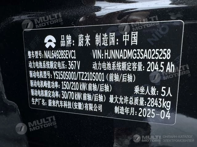 ОБЩИЕ ХАРАКТЕРИСТИКИ NIO ES6 2025 (3100 км)