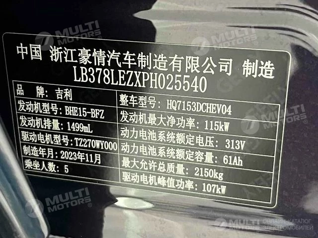 ОБЩИЕ ХАРАКТЕРИСТИКИ Geely Galaxy L6 2023 (25000 км)