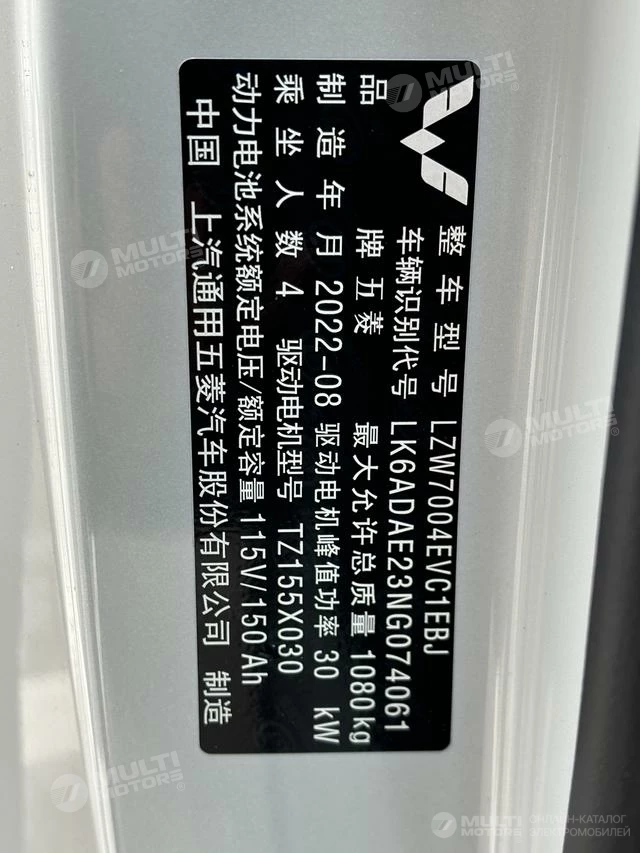 ОБЩИЕ ХАРАКТЕРИСТИКИ Wuling MINI EV 2022 (29500 км)