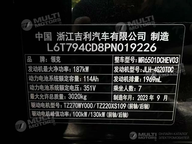 ОБЩИЕ ХАРАКТЕРИСТИКИ LYNK & CO 09 EM-P 2023 (27000 км)