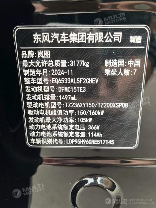 ОБЩИЕ ХАРАКТЕРИСТИКИ VOYAH Dreamer PHEV 2025 (20000 км)
