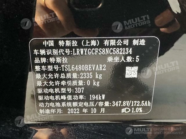 ОБЩИЕ ХАРАКТЕРИСТИКИ Tesla Model Y 2022 (70000 км)