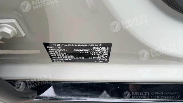 ОБЩИЕ ХАРАКТЕРИСТИКИ Xiaomi SU7 2024 (9000 км)