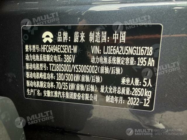ОБЩИЕ ХАРАКТЕРИСТИКИ NIO ES7 2022 (40000 км)
