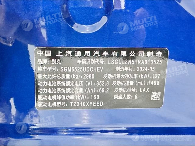 ОБЩИЕ ХАРАКТЕРИСТИКИ Buick GL8 PHEV 2024 (1200 км)