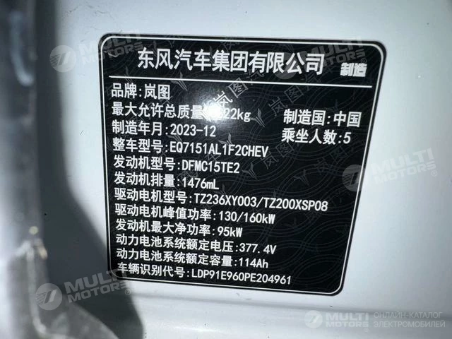 ОБЩИЕ ХАРАКТЕРИСТИКИ VOYAH Passion PHEV 2024 (13000 км)