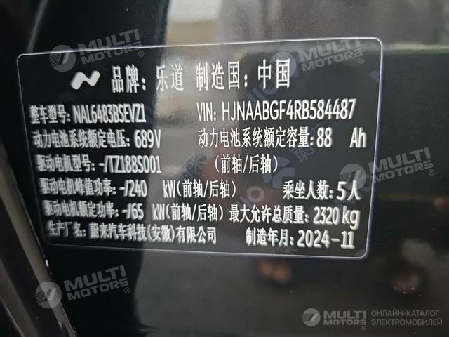 ОБЩИЕ ХАРАКТЕРИСТИКИ ONVO Nio Le Dao L60 2024 (10300 км)