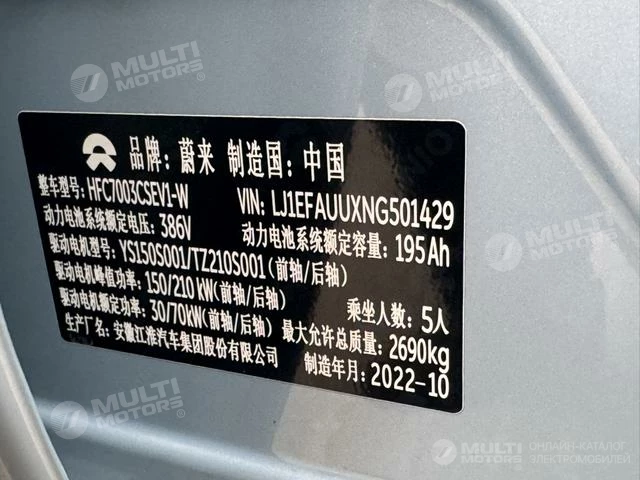 ОБЩИЕ ХАРАКТЕРИСТИКИ NIO ET5 2022 (65000 км)