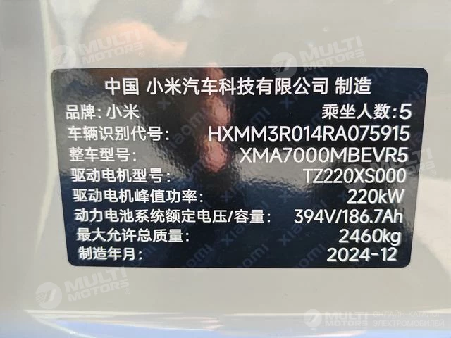 ОБЩИЕ ХАРАКТЕРИСТИКИ Xiaomi SU7 2024 (28200 км)