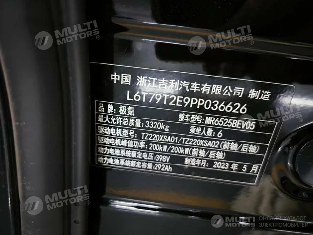 ОБЩИЕ ХАРАКТЕРИСТИКИ ZEEKR 009 2023 (50000 км)
