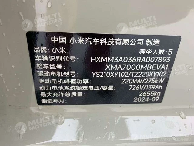 ОБЩИЕ ХАРАКТЕРИСТИКИ Xiaomi SU7 2024 (47600 км)