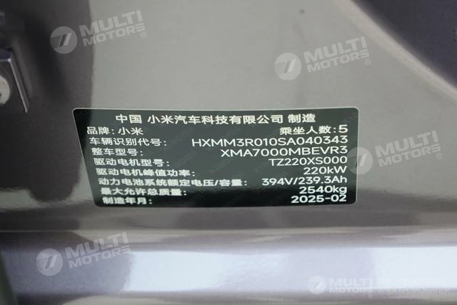 ОБЩИЕ ХАРАКТЕРИСТИКИ Xiaomi SU7 2024 (11800 км)