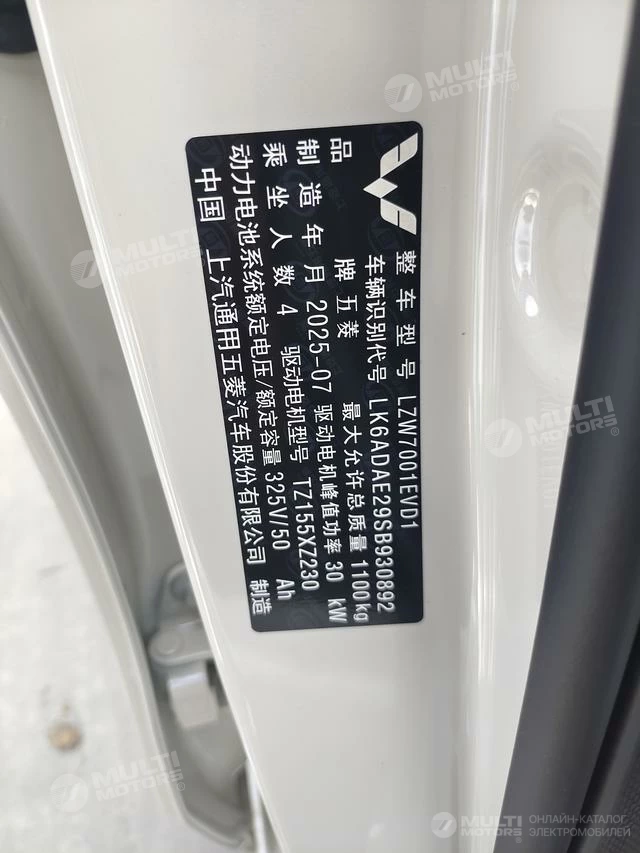 ОБЩИЕ ХАРАКТЕРИСТИКИ Wuling MINI EV 2025 (400 км)
