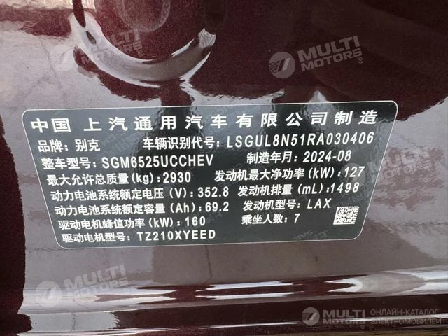 ОБЩИЕ ХАРАКТЕРИСТИКИ Buick GL8 PHEV 2024 (33000 км)