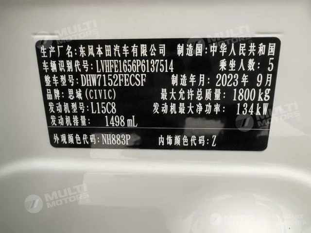 ОБЩИЕ ХАРАКТЕРИСТИКИ Honda Civic 2022 (16000 км)