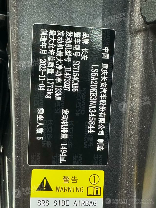 ОБЩИЕ ХАРАКТЕРИСТИКИ Changan UNI-V 2022 (23000 км)