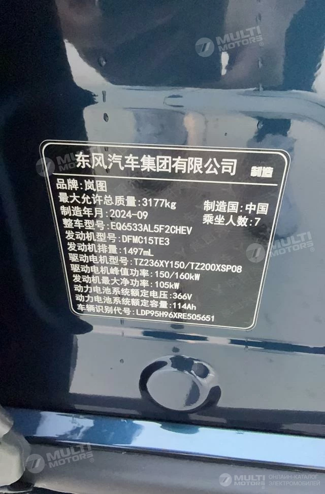 ОБЩИЕ ХАРАКТЕРИСТИКИ VOYAH Dreamer PHEV 2024 (10600 км)