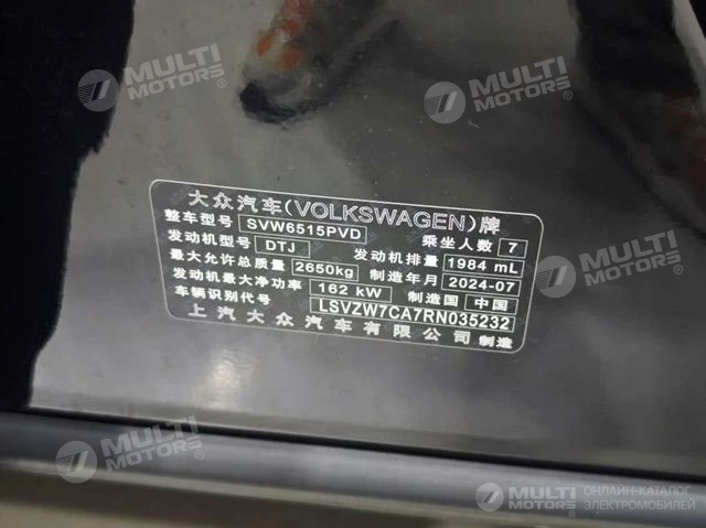 ОБЩИЕ ХАРАКТЕРИСТИКИ Volkswagen Tourang 2024 (8300 км)