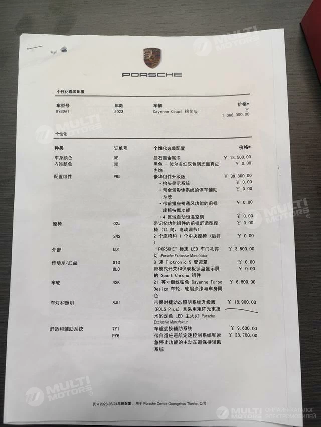 ОБЩИЕ ХАРАКТЕРИСТИКИ Porsche Cayenne Coupé 2023 (33000 км)