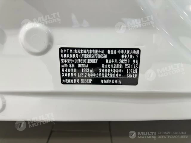 ОБЩИЕ ХАРАКТЕРИСТИКИ Honda Elysion 2022 (23900 км)