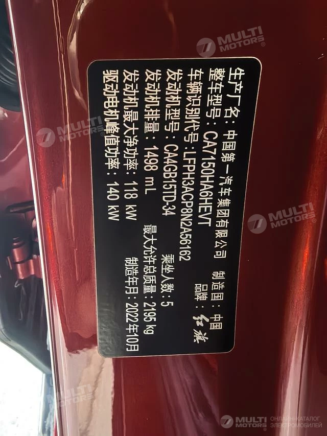 ОБЩИЕ ХАРАКТЕРИСТИКИ Hongqi H5 2023 (13000 км)