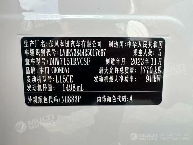 ОБЩИЕ ХАРАКТЕРИСТИКИ Honda XR-V 2024 (18400 км)