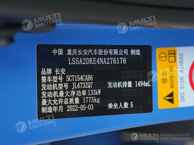 ОБЩИЕ ХАРАКТЕРИСТИКИ Changan UNI-V 2022 (25000 км)