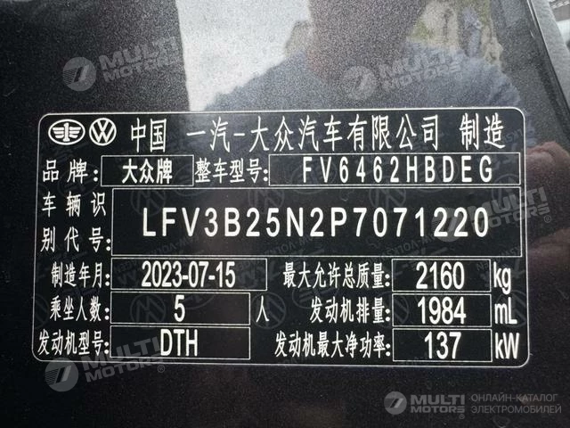ОБЩИЕ ХАРАКТЕРИСТИКИ Volkswagen Tayron 2023 (25000 км)