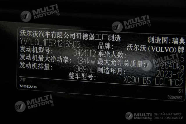 ОБЩИЕ ХАРАКТЕРИСТИКИ Volvo XC90 2024 (18500 км)