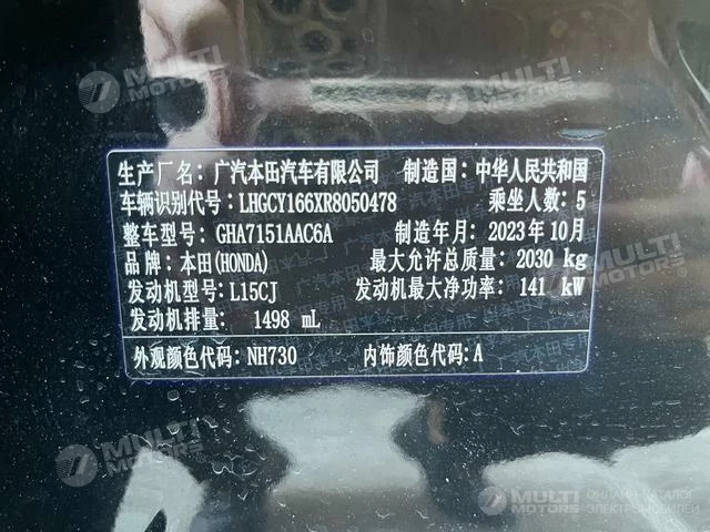 ОБЩИЕ ХАРАКТЕРИСТИКИ Honda Accord 2023 (13000 км)