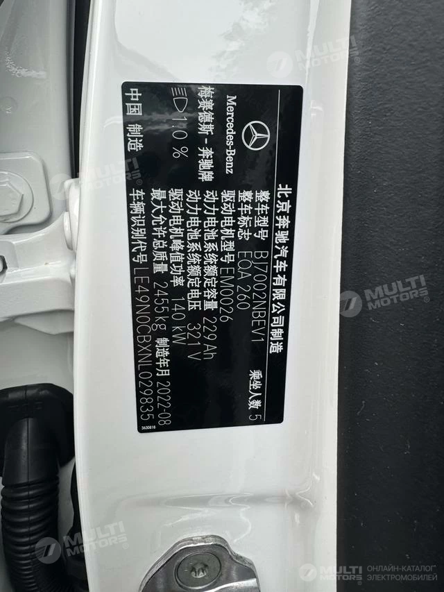 ОБЩИЕ ХАРАКТЕРИСТИКИ Mercedes-Benz EQA 2022 (77000 км)