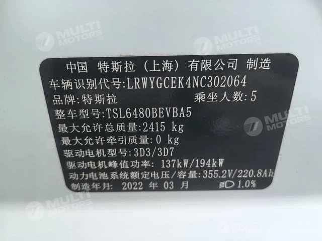 ОБЩИЕ ХАРАКТЕРИСТИКИ Tesla Model Y 2022 (84000 км)