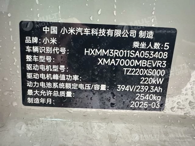 ОБЩИЕ ХАРАКТЕРИСТИКИ Xiaomi SU7 2024 (18400 км)