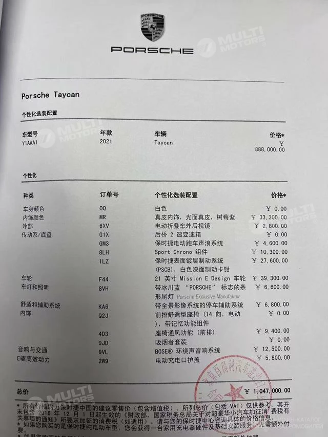 Комплектация: Taycan