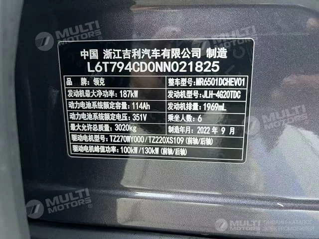 ОБЩИЕ ХАРАКТЕРИСТИКИ LYNK & CO 09 EM-P 2023 (52000 км)