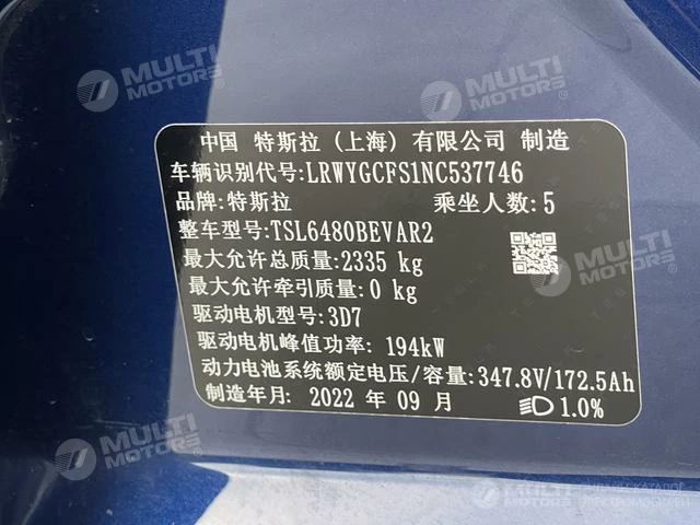ОБЩИЕ ХАРАКТЕРИСТИКИ Tesla Model Y 2022 (75000 км)
