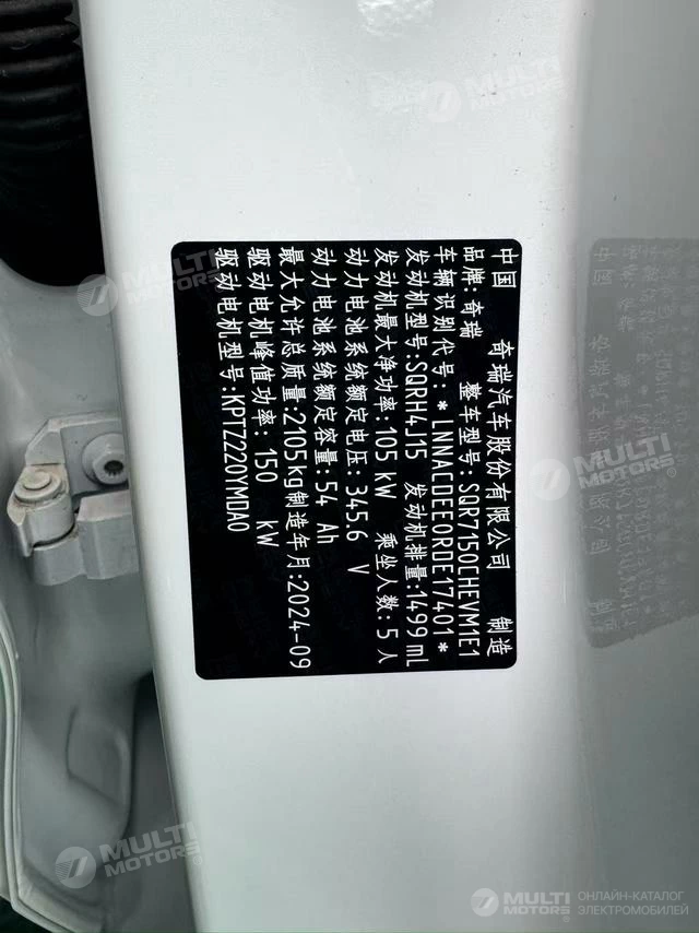 ОБЩИЕ ХАРАКТЕРИСТИКИ Chery A8 2024 (500 км)