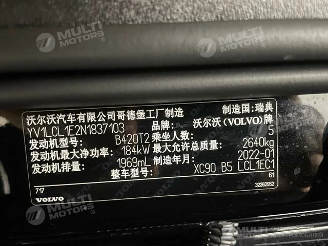 ОБЩИЕ ХАРАКТЕРИСТИКИ Volvo XC90 2022 (30300 км)