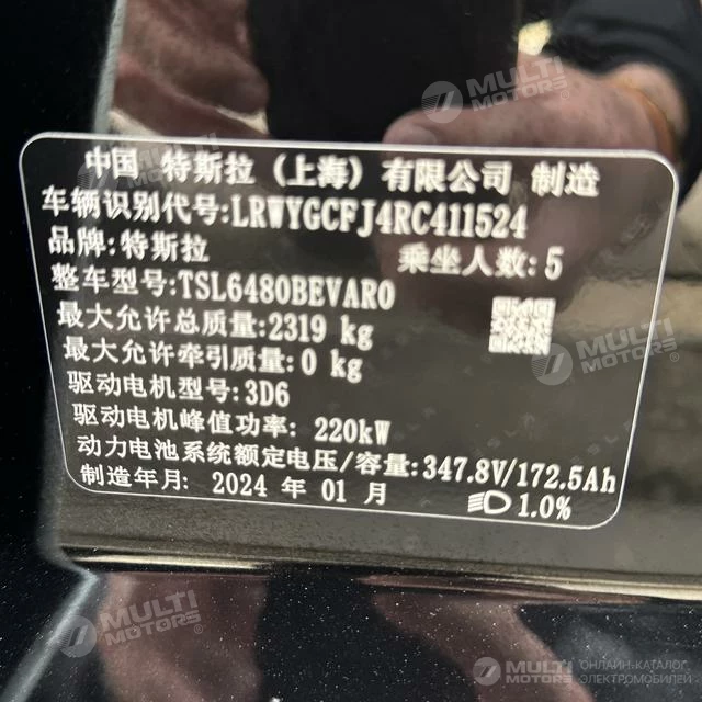 ОБЩИЕ ХАРАКТЕРИСТИКИ Tesla Model Y 2024 (84000 км)
