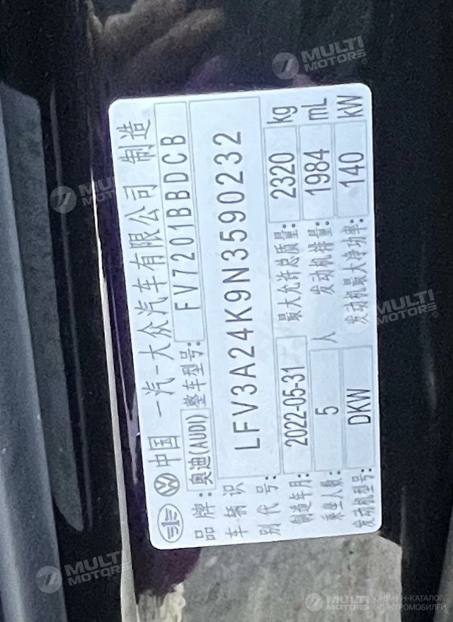 ОБЩИЕ ХАРАКТЕРИСТИКИ Audi A6L 2022 (15000 км)